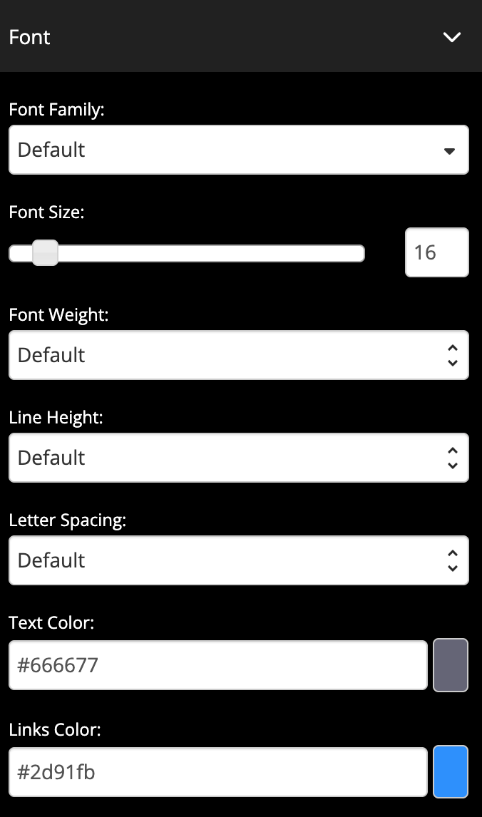 Click on the drop-down and select the letter spacing you prefer. - Text & Links Color