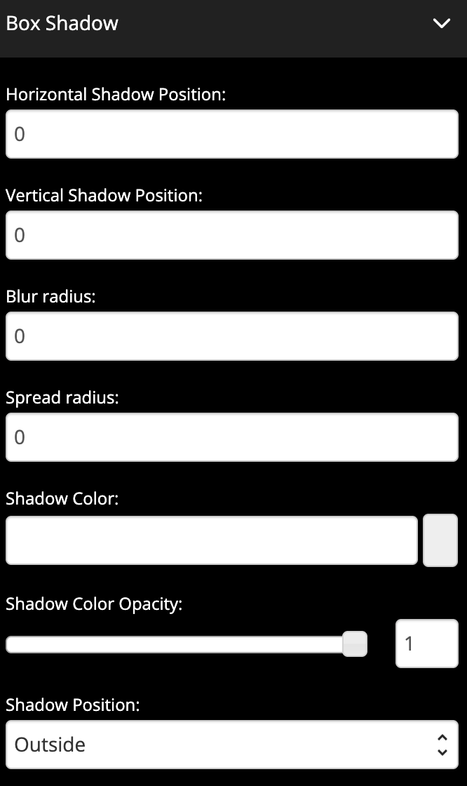 Adjust the opacity or transparency of the shadow. Click on the slider and move it left or right to increase or decrease the opacity. - Shadow Position