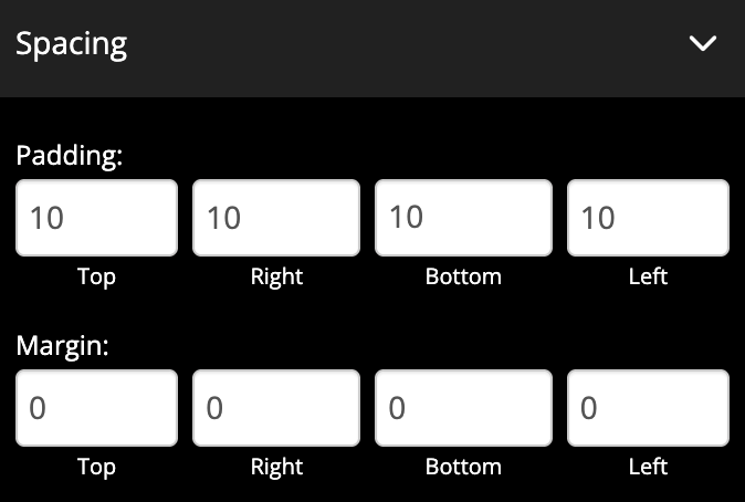 Simply add the numeric (pixel) value to the Top, Bottom, Right or Left Margin field provided.
