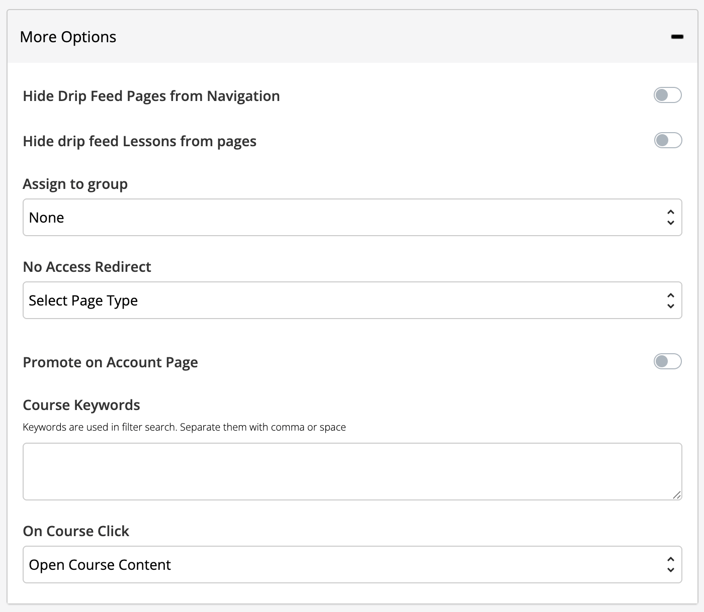 Additional course settings are available on More Options such as Hide Drip options and etc.